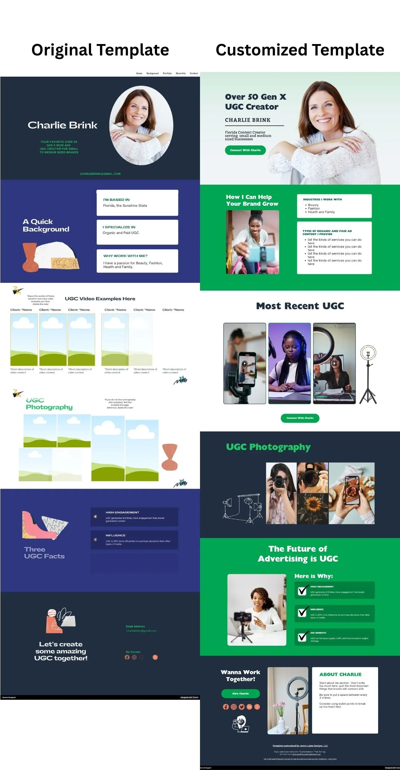 Need help? I offer a “tidy up” service for UGC Creators who need help tidying up their Canva or Carrd portfolios. Email me at genxugc@jennylainedesigns.com for help.